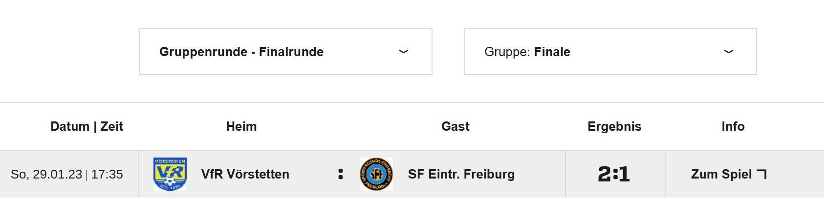 Trotzdem 2. Minute 0:1 für Vörstetten.